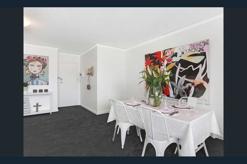- Combined living and dining zone extends to enclosed balcony